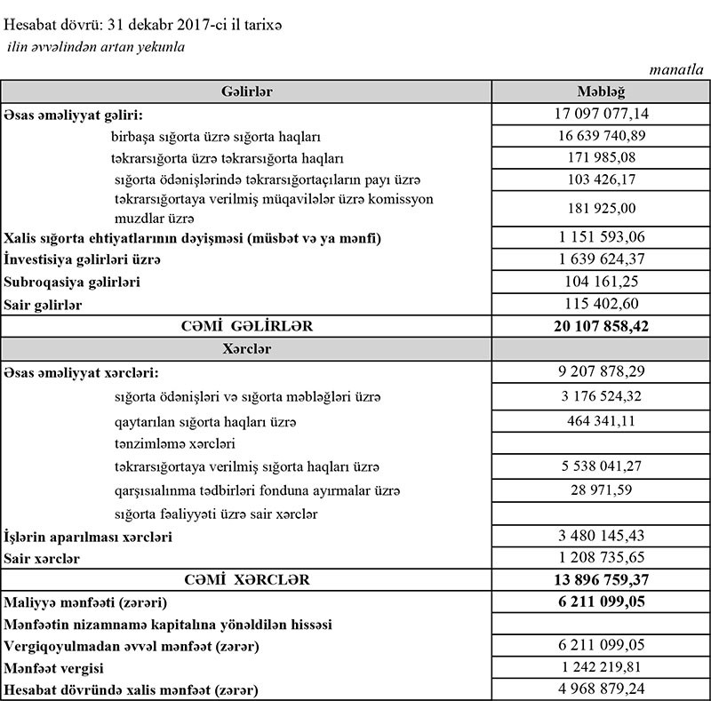 Qeyd edək ki, bugünədək maliyyə hesabatlarını dərc etmiş "A-Qrup", "AtaSığorta" və "Xalq Sığorta"nın xalis mənfəətləri azalıb.