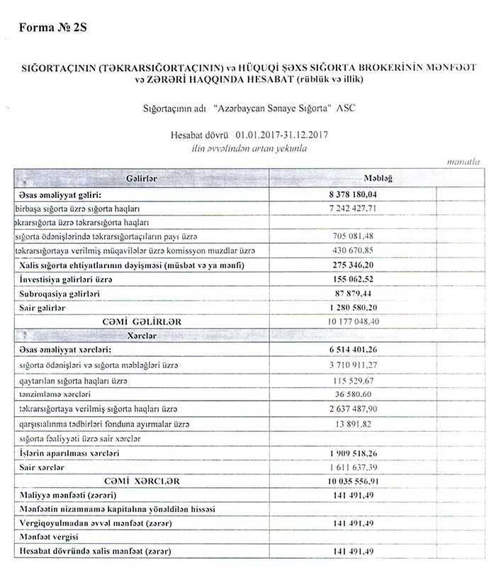 “Azərbaycan Sənaye Sığorta” ASC 2017-ci ili 141,5 min manat xalis mənfəətlə başa vurub. Bu, 2016-cı ilin xalis mənfəəti ilə müqayisədə 12 dəfə azdır. Şirkət 2016-cı ili 1 milyon 735 min manat xalis mənfəətlə bağlamışdı.