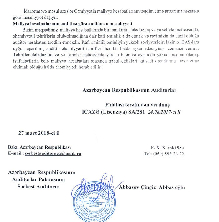 Xərclərin artmasının digər bir səbəbi sığorta ödnişlərinin artmasıdır. 2017-ci ildə don və dolu düşməsi nəticəsində sığortalanmış əkin sahələrinə böyük zərər dəydi. Bu zərər ödənişlərin 2016-cı illə müqayisədə 480 min manat artmasına səbəb oldu”.
