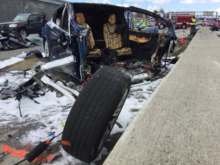 Tesla markalı maşın qəzada ilk olaraq sədlərə və daha sonra iki maşına dəyərək parça-parça olub. Faciəvi qəzada avtomobilin sürücüsü Wei Huang ağr yaralı olaraq xəstəxanaya aparılıb. Huang, xəstəxanada dünyasını dəyişib.