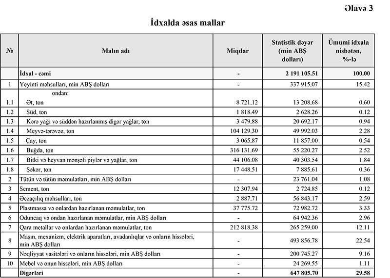 Azərbaycanın ən çox idxal və ixrac etdiyi mallar