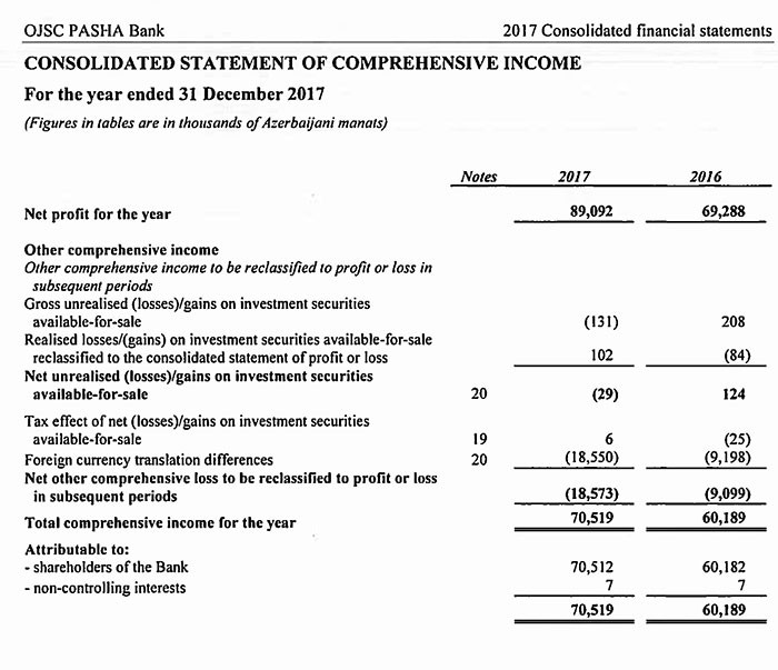 2016-cı ildə vergidən əvvəl 87 milyon 871 min manat mənfəət əldə etmiş PAŞA Bank, ötən il 112 milyon 790 min manat vergidən əvvəl mənfəət əldə edib. Bu mənfəətdən 23 milyon 698 min manat mənfəət vergisi ödənilib.
