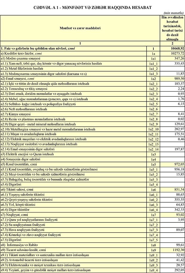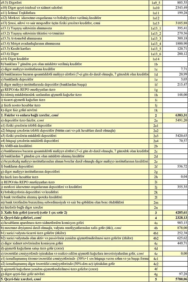 "AtaBank"ın müştərilərə verdiyi kreditlər 464 milyon 34 min manatdan 464 milyon 331 min manata, xalis kreditlər isə 415 milyon 422 min manatdan 416 milyon 400 min manata yüksəlib.