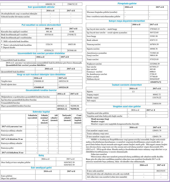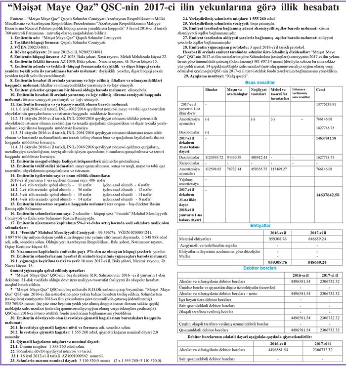 "Femida" MMC-yə məxsus “Məişət Maye Qaz” QSC 2017-ci ilin yekunları üzrə illik hesabatını dərc etdirib.