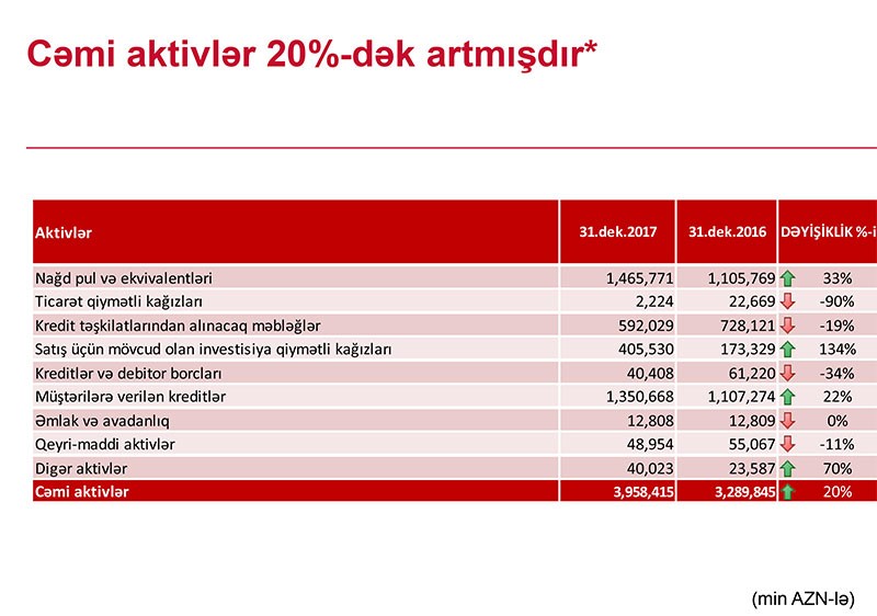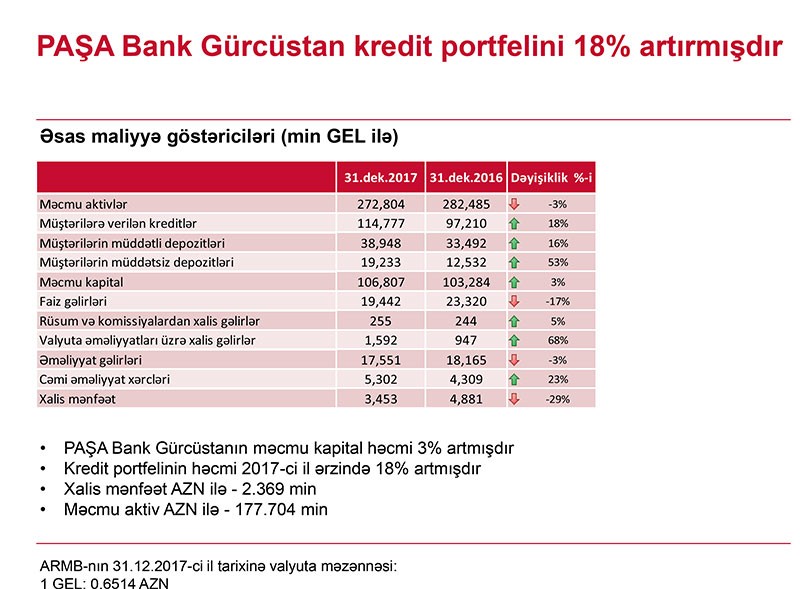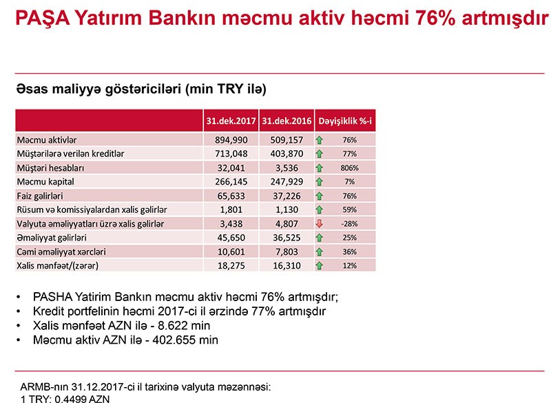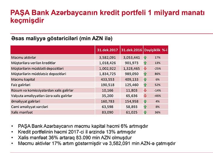 PAŞA Bankın 31 dekabr 2017-ci il üzrə maliyyə nəticələri