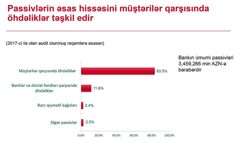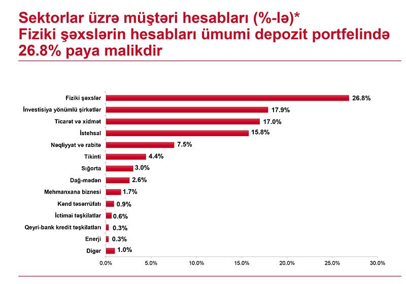 Müştəri hesablarından danışan Xəyalə Nağıyeva qeyd etdi ki, məvaciblərin bank vasitəsilə ödənilməsinə keçidin sürətlənməsi fiziki şəxslərin hesablarının artmasına səbəb olmuşdur. Fiziki şəxslərin hesabları ümumi depozit portfelində 26,8% paya malik olub.