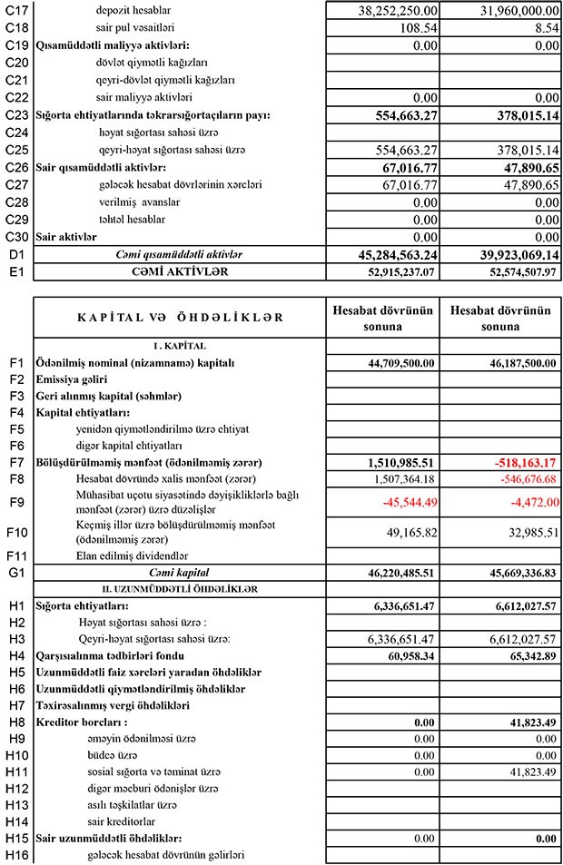 İlk rübdə şirkətin toladığı sığorta haqları 1 milyon 524 min manat, sığorta ödənişləri isə 647 min manat təşkil edib.