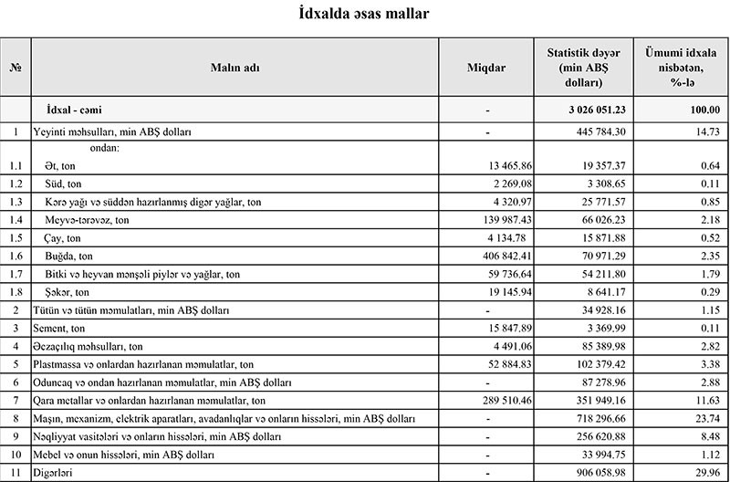 Azərbaycanın ən çox idxal və ixrac etdiyi mallar