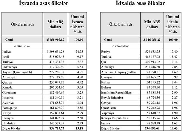 Azərbaycanın 2018-ci ilin yanvar-aprel aylarındakı 3 milyard 26 milyon dollarlıq cəmi idxalının təxminən 30%-i və ya 994 milyon dolları Rusiya və Türkiyədən həyata keçirilib. Ötən ilin ilk 4 ayında bu iki ölkədən idxal 765 milyon dollar təşki etmişdi.