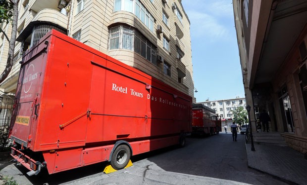 Mayın 20-də Azərbaycana qeyri-adi formada turist səfəri başlayıb. “Rotel Tours” şirkətinin təşkil etdiyi səfər zamanı turistlər avtobusun arxasına bağlanmış xüsusi qoşquda yatmaq imkanı əldə edirlər.