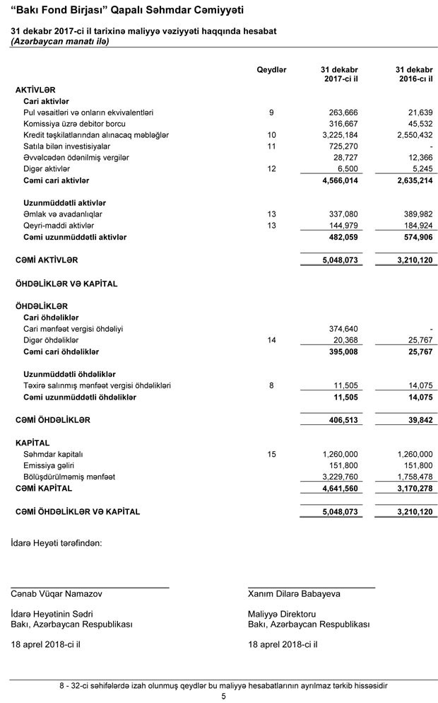 “Bakı Fond Birjası” QSC 2017-ci ili 1 milyon 471 min manat xalis mənfəətlə başa vurub. Halbuki birja, 2016-cı ili 116 min 281 manat zərər ilə bağlamışdı.
