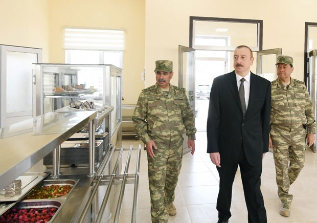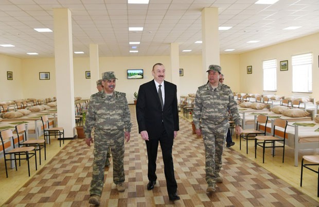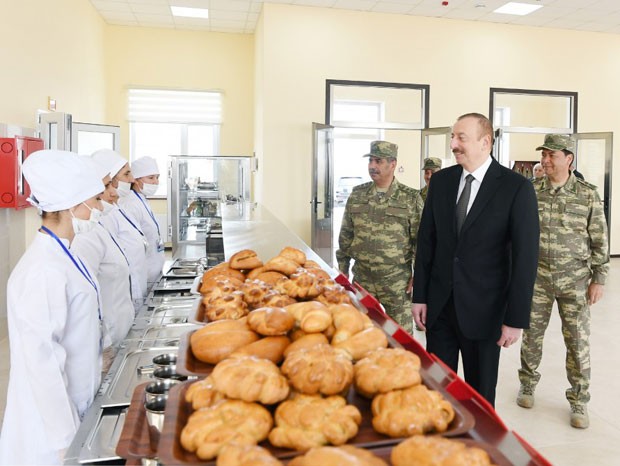 Dövlətimizin başçısı hərbi hissənin əsgər yataqxanasında yaradılan şəraitlə də tanış olub.