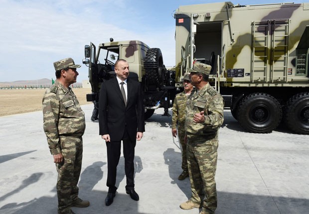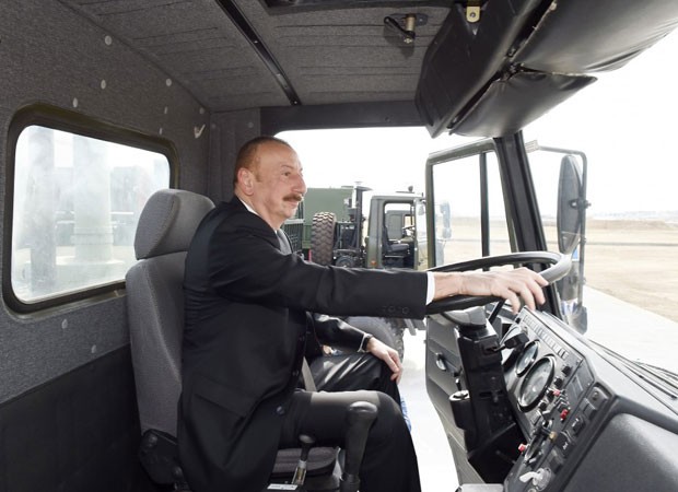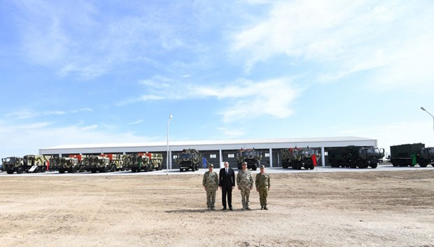 Prezident, Silahlı Qüvvələrin Ali Baş Komandanı İlham Əliyev raketlərin saxlanması və döyüş maşınlarına yüklənməsi anqarına da baxıb.