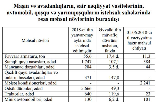 2018-ci ilin yanvar-aprel aylarında da Azərbaycanda 130 ədəd minik avtomobili istehsal edilmişdi. Belə çıxır ki, Mayda Azərbaycanda minik avtomobili istehsal edilməyib.