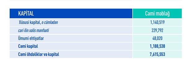 Hesabat dövründə bankda əhalinin əmanətlərinin həcmi 1.26 milyard manat, korporativ müştərilərin vəsaitləri isə 2.63 milyard manat olub.