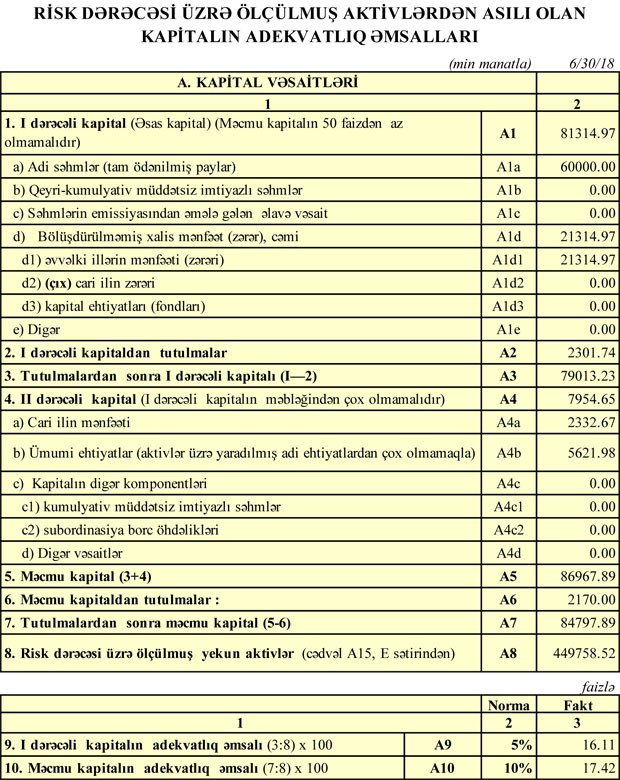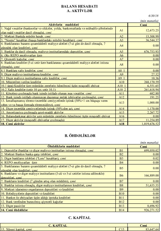 Bank 615 min manat aktivlər üzrə mümkün zərərlərin ödənilməsi üçün xüsusi ehtiyatın yaradılmasına ayırıb, həmçinin, 607 min manat mənfəət vergisi ödəyin.