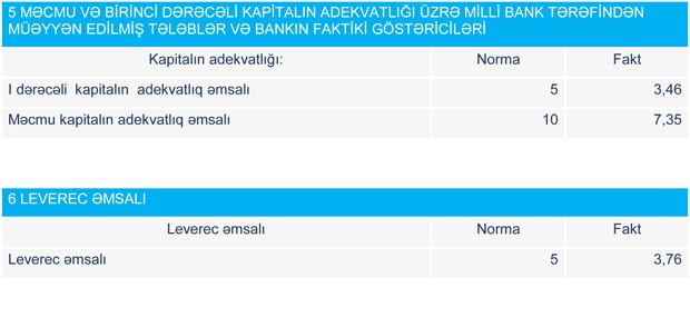 Müqayisə üçün qeyd edək ki, 2017-ci ilin 1-ci yarısında "Bank of Baku"nun faiz gəlirləri 32 milyon 198 min manat, qeyri-faiz gəlirləri 150 min manat təşkil etmiş, mümkün zərərlərin ödənilməsi üçün yaradılan xüsusi ehtiyatlara 32 milyon 727 min manat ayrıldığından Bank 26 milyon 41 min manat zərər açıqlamışdı.