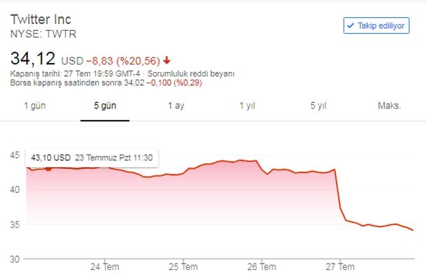 Beləliklə, Twitter-in bazar dəyəri 33,29 milyard dollardan 26,45 milyard dollara geriləyərək, 6 milyard 840 milyon dollarlıq azalma göstərib.