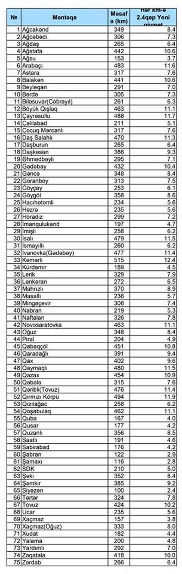 Şəhərlərarası avtobus marşrutlarının yeni tarifləri açıqlandı - SİYAHI