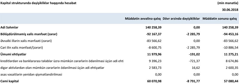 30 İyun 2018-ci ildə “AccessBank” 28 milyon 56 min manat məcmu kapitala malik olub. Bu gün “AccessBank” bəyan edib ki, nizamnamə kapitalı 2 dəfə artırılaraq 280 milyon 258 min manata qaldırılacaqdır. "AccessBank"ın İdarə Heyətinin sədri Anar Həsənov bildirib ki, ötən həftə baş tutan Səhmdarların Ümumi Yığıncağında bankın nizamnamə kapitalının 140 milyon manat məbləğində artırılması barədə qərar qəbul olunub. Kapitalın 280 milyon 258 min manata qaldırılması nəticəsində Bankın məcmu kapitalının 70 milyon manatı keçəcəyi gözlənilir.