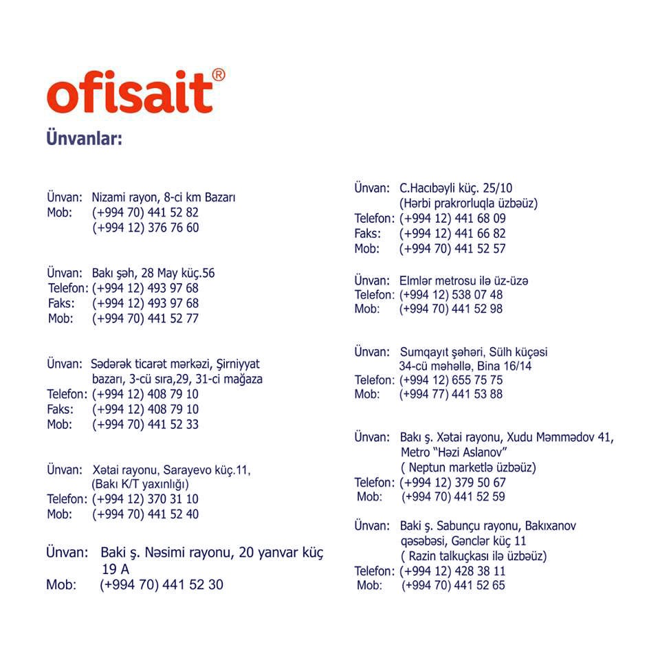 Aksiya ilə bağlı daha ətraflı məlumat almaq üçün 012 310 43 10 nömrəli Məlumat Mərkəzindən, həmçinin “Ofisait”in Facebook və Instagram səhifələrindən əldə etmək olar.