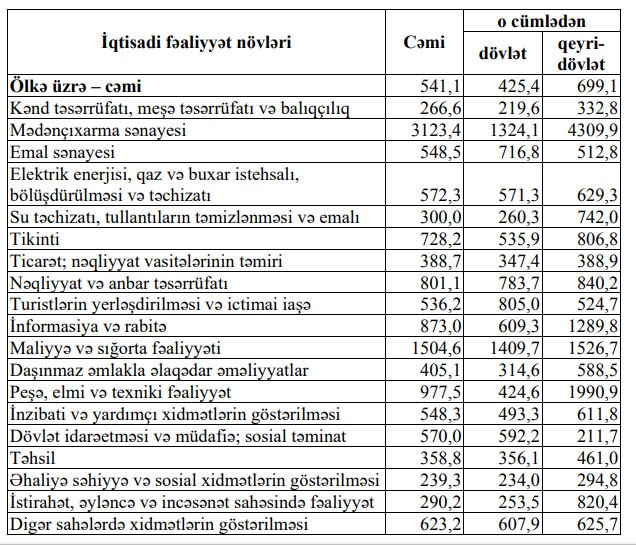 Neft sektorunda 3161 manat, qeyri-neft sektorunda isə 481 manatdır