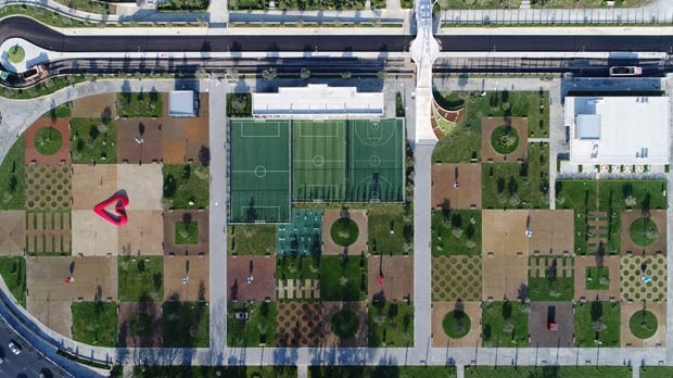 İdman-əyləncə park kompleksi Bakının Xətai rayonunda Yusif Səfərov, Ələddin Quliyev və Sergey Senyuşkin küçələrini əhatə edən ərazidə salınıb.