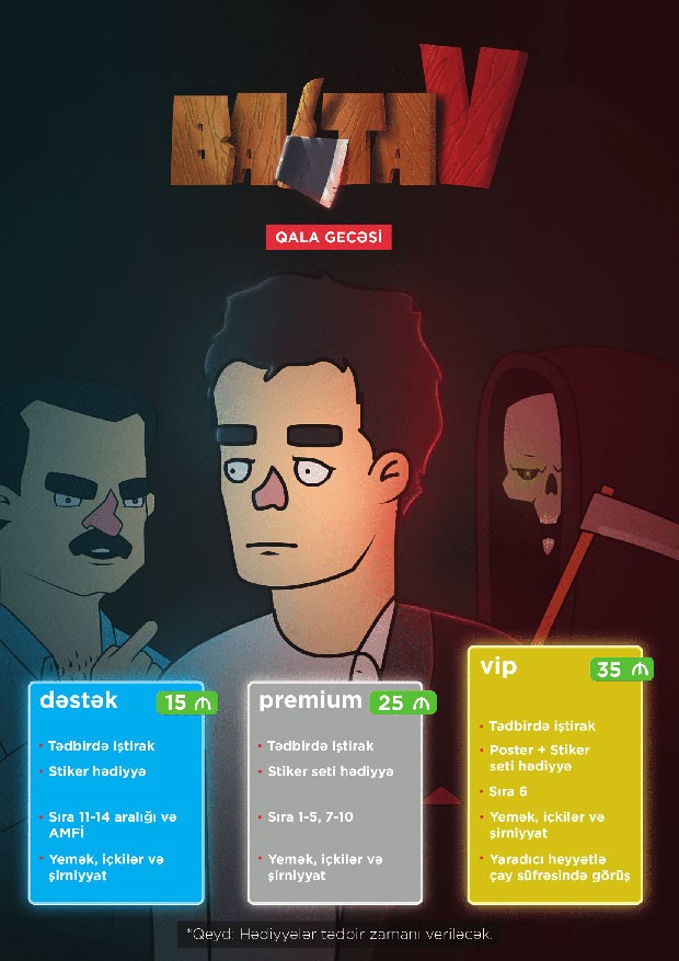 28 avqust, Nizami Kino Mərkəzində böyüklər üçün animasiya serialı “Balta”nın sezon finalına özəl qala gecəsi keçiriləcək. Tədbirdə Balta’nın necə ərsəyə gəldiyi, komanda üzvləri, “The Half” musiqi qrupu və 5-ci özəl qala gecəsi bölümü təqdim olunacaq.