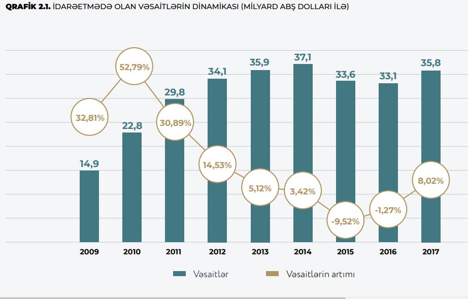 Ötən il, Fondun idarəetməsində olan vəsaitlər 8,02% artaraq 35,8 milyard dollara çatmışdı.