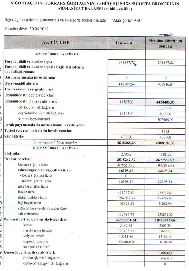 “AtaSığorta” ASC 2018-ci ilin birinci yarısını 2 milyon 350 min manat zərər ilə başa vurub.