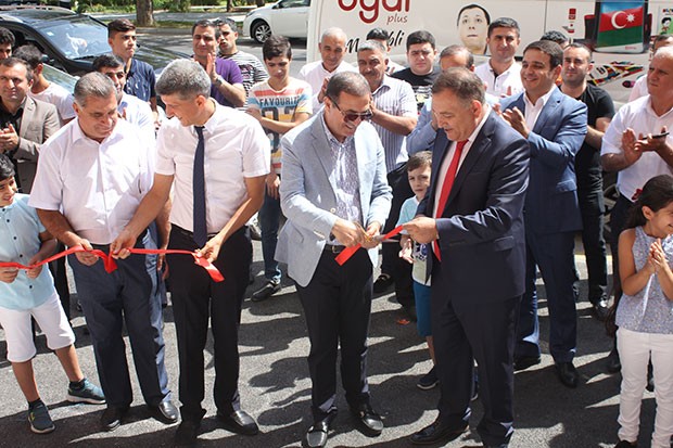 Çıxışladan sonra tort və açılış lenti kəsildi.