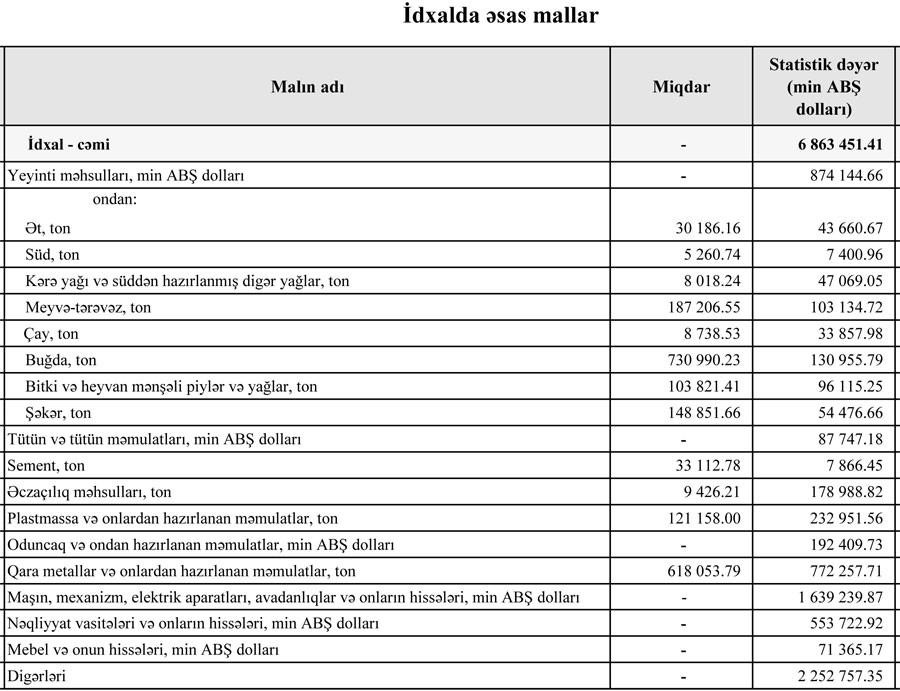 "Marja" Dövlət Gömrük Komitəsinin hesabatından təqdim edir.