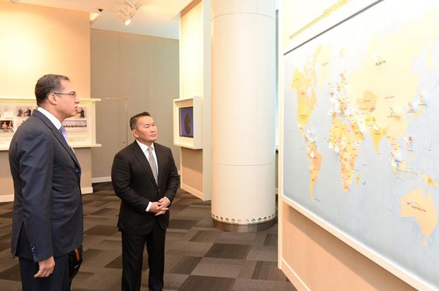 Azərbaycan Prezidenti cənab İlham Əliyevin dəvəti ilə ölkəyə səfər etdiyini qeyd edən Monqolustan Prezidenti Azərbaycan və Monqolustan arasında mövcud olan əlaqələr barədə məlumat verib. ARDNF barədə təqdimatla tanış olan Prezident Xaltmaaqiyn Battulqa Neft Fondunun neft və qaz gəlirlərinin şəffaf idarə edilməsi istiqamətində mövcud təcrübəsini yüksək qiymətləndirib.