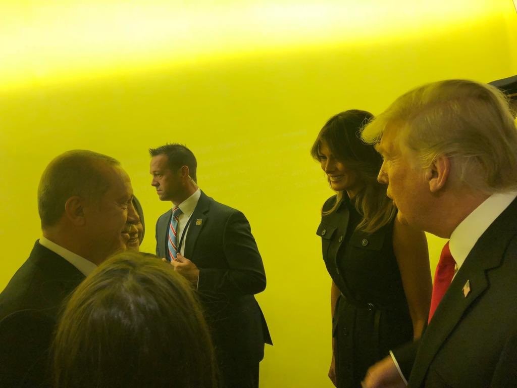 Türkiyə Prezidenti Rəcəb Tayyib Ərdoğan Birləşmiş Millətlər Təşkilatının Baş Məclisində çıxışından əvvəl kolidorda ABŞ Prezidenti Donald Tramp ilə təsadüfən rastlaşıb və ayaqüstü qısa söhbət ediblər.