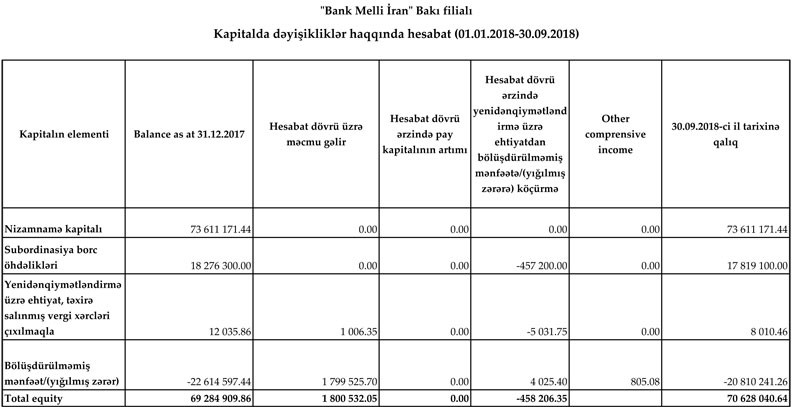 "Bank Melli İran" Bakı filialı 2018-ci ilin 9 ayını 1 milyon 800 min manat xalis mənfəətlə başa vurub. Müqayisə üçün qeyd edək ki, filial ötən ilin eyni dövründə 1 milyon 336 min manat xalis mənfəət əldə etmişdi. Beləliklə, Bankın xalis mənfəəti 35% artıb.