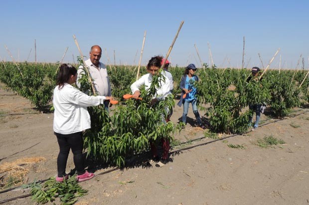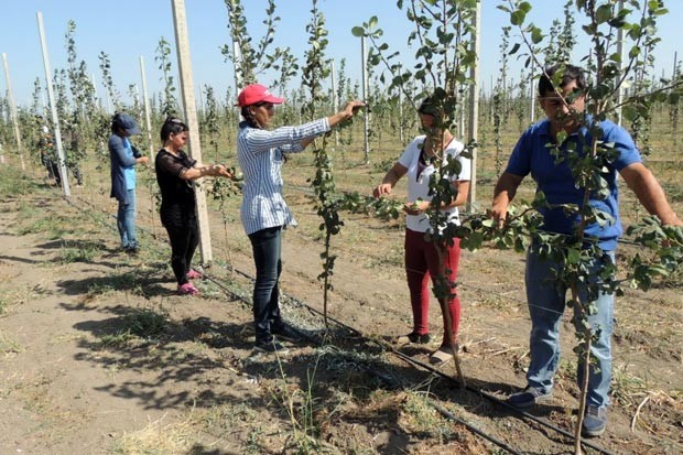 Hazırda meyvə bağında ağaclara payız qulluğu olunur. Aqronom Asif Zeynalov deyib ki, bağda yaşıl budama işləri ilə yanaşı, ağaclara forma verilməsinə xüsusi diqqət yetirilir. Meyvə ağacına forma verilməsində əsas məqsəd onu barvermə dövrünə keçməyə məcbur etmək və hər il yüksək məhsul götürməyə nail olmaqdır. Bunun üçün ağacların budaqları əyilərək, lentlə qarğılara bağlanır. Ağacların suvarılmasının damlama üsulu ilə həyata keçirilməsi isə onların inkişafını və məhsuldarlığını artırır.