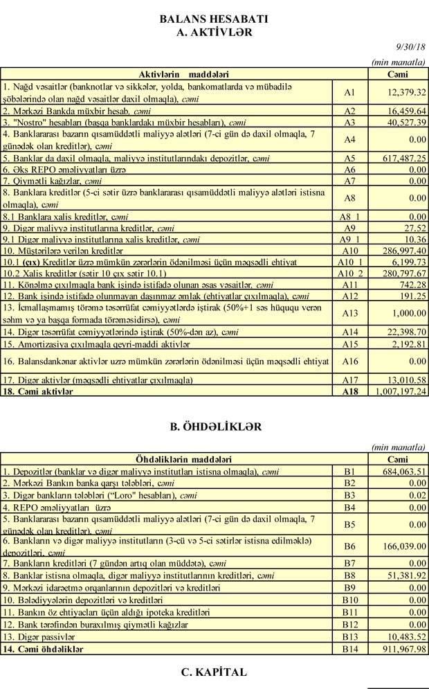 30 Sentyabr 2018-ci il tarixinə ASB-nin aktivləri 1 milyard 7 milyon manat təşkil edib. Bank. 31 Dekabr 2017-ci il tarixində 945 milyon manat, 30 İyun 2018-ci il tarixində isə 1 milyard 19 milyon manat cəmi aktivlərə malik idi.