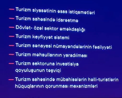“Hazırda əsas işimiz “Turizm” haqqında qanun layihəsinin hazırlanmasına nail olmaqdır”.