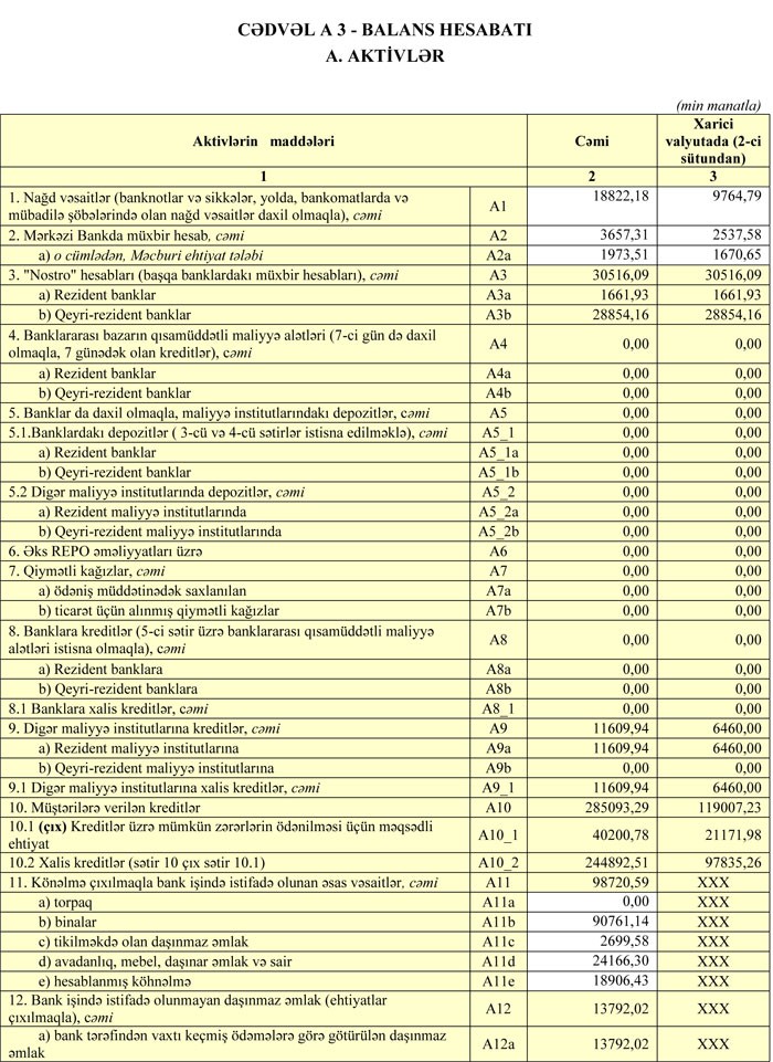 30 Sentyabr 2018-ci il tarixində cəmi kredit qoyuluşlarının 147 milyon 190 min manatını vaxtı keçmiş kreditlər təşkil edib. 31 Dekabr 2017-ci il tarixində bu məbləğ 147 milyon 296 min manat idi.