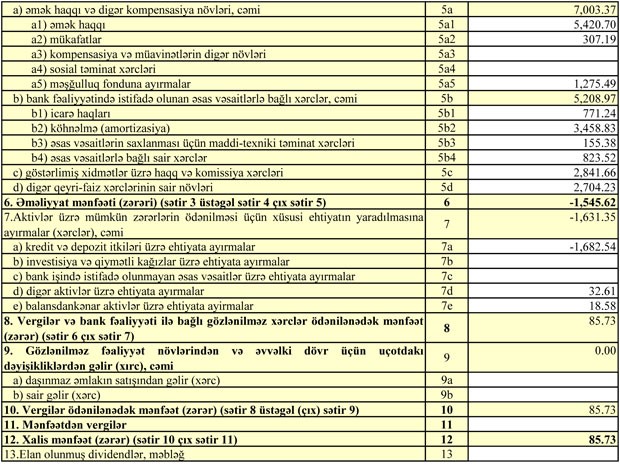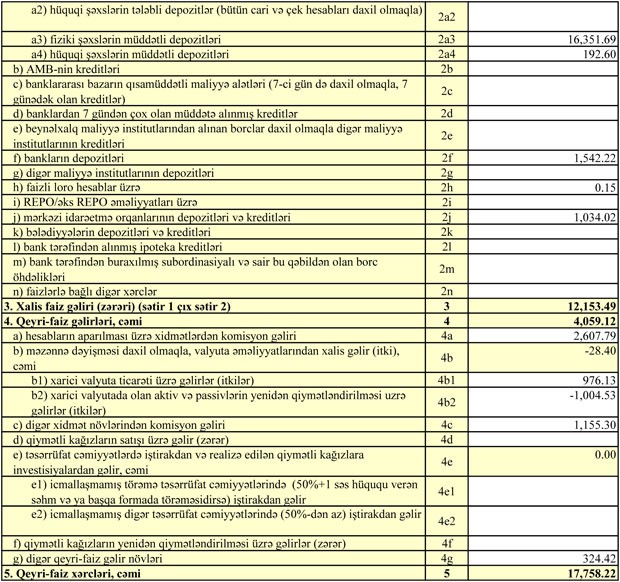 Müştərilərə verilən kreditlər 2017-ci ilin sonundakı 464 milyon 34 min manat manatdan 30 Sentyabr 2018-ci il tarixində 453 milyon 389 min manata düşüb. Bankda depozitlər isə 329 milyon 106 min manatdan 305 milyon 289 min manata geriləyib.