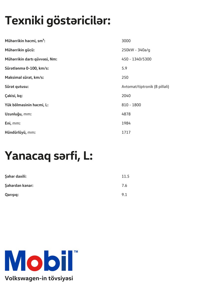 Böyük krossoverə sürət və güclü mühərrik lazımdır. Yeni Touareg 3 litrlik, 340 at gücündə benzin turbo-V6 mühərrik ilə təchiz edilir. Yeni Touareg 100 km/saat sürəti cəmi 5.9 saniyəyə toplayır.