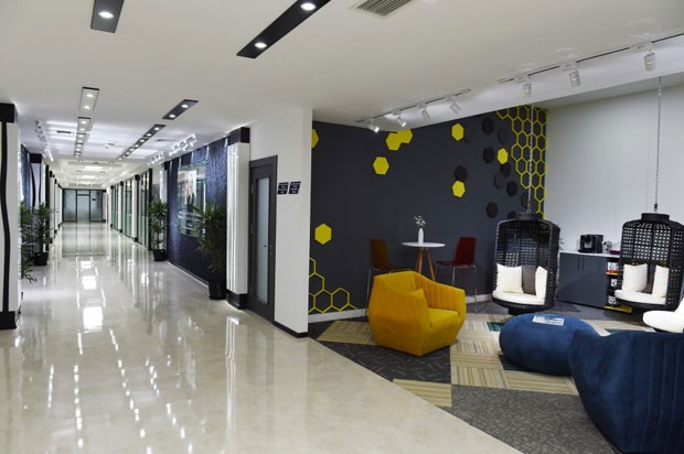 “İNNOLAND” İnkubasiya və Akselerasiya Mərkəzinin fəaliyyəti ilə tanış olan Prezident İlham Əliyevə məlumat verildi ki, “İNNOLAND” Azərbaycanda, eyni zamanda, onun hüdudlarından kənarda özəl sektorun inkişaf etdirilməsi, innovasiyanın təşviqi və startap hərəkatının genişləndirilməsi üçün yaradılan inkubasiya, akselerasiya və araşdırma mərkəzidir. İNNOLAND Kovörkinq, İnkubasiya, Akselerasiya və İT Təlim-Tədris Mərkəzindən ibarətdir. Buradakı “Kovörkinq” mərkəzi startaplar, proqramçılar, innovasiyalar sahəsində tək və ya kiçik komanda ilə işləyən şəxslər üçün sərfəli və bir çox imkanları özündə birləşdirən iş yeridir. “İNNOLAND”də fəalliyyət göstərəcək “Kovörkinq” mərkəzi həftənin 7 günü 24 saat giriş imkanına, yüksək sürətli internetə, vahid məlumat köşkünə, mentor dəstəyinə malikdir.