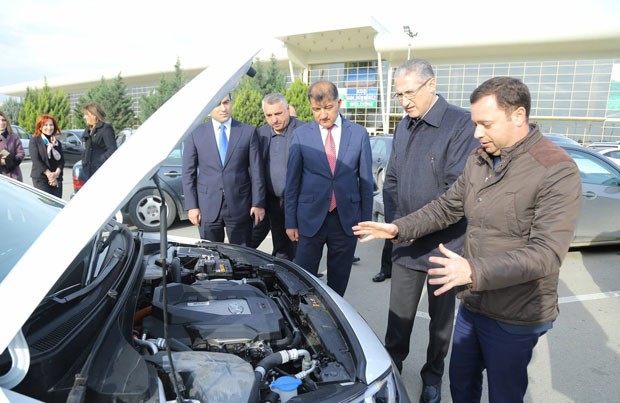 Nazirliyin məsul şəxsləri sərgiyə elektrik avtomobili ilə gəlib