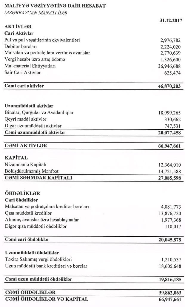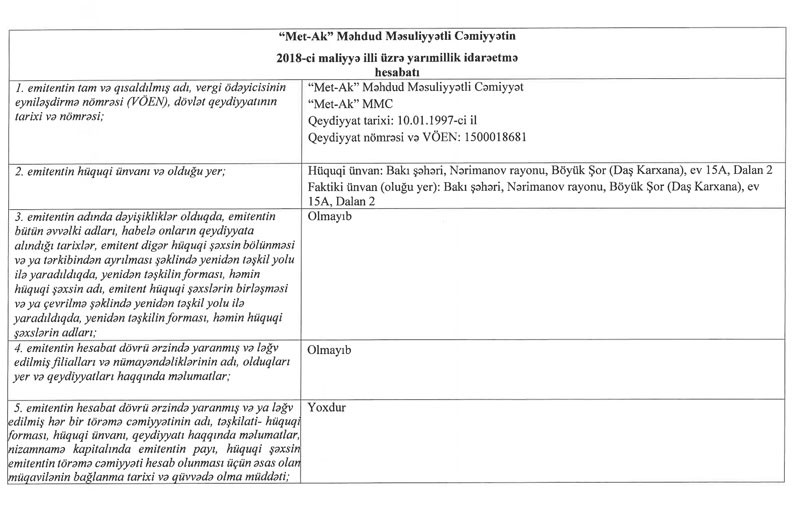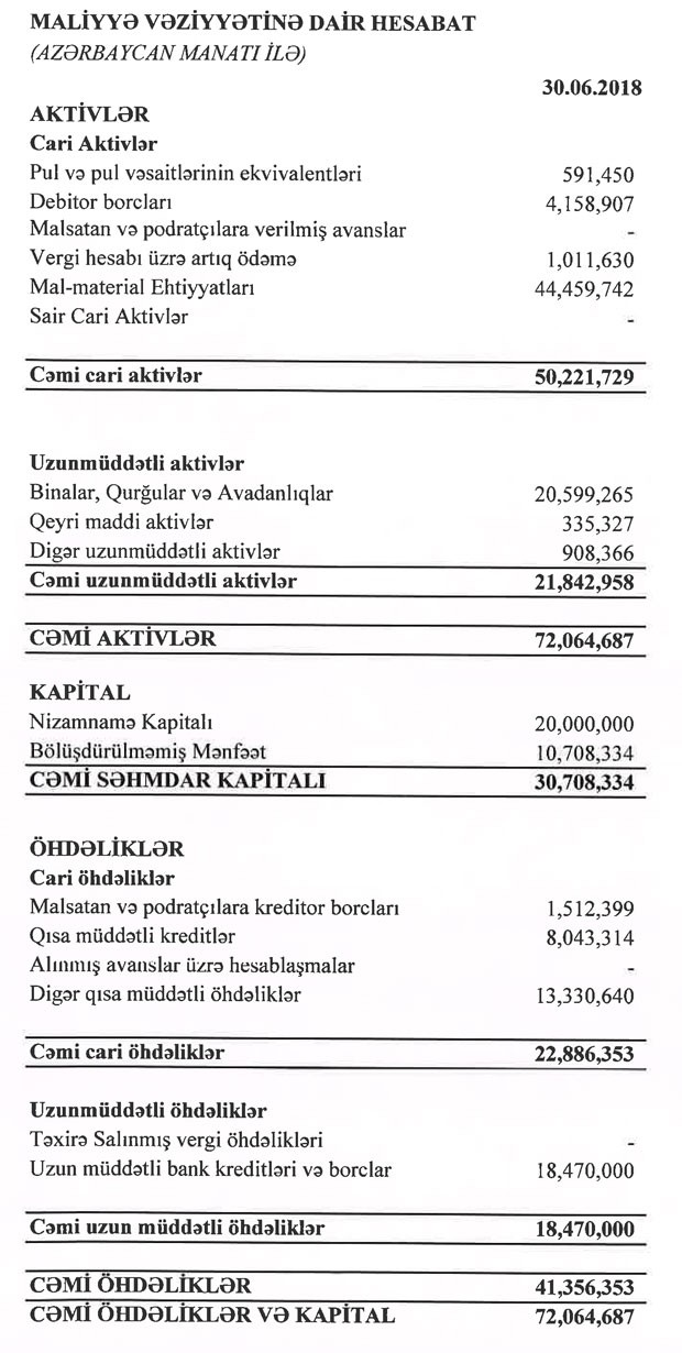 30 İyun 2018-ci il tarixində “METAK” 72 milyon 65 min manat cəmi aktivlərə, 22 milyon 886 min manat cəmi öhdəliklərə və 30 milyon 708 min manat cəmi kapitala malik olub. Müqayisə üçün qeyd edək ki, şirkət ötən ilin sonunda 66 milyon 947 min manat cəmi aktivlərə, 39 milyon 862 min manata cəmi öhdəliklərə və 27 milyon 85 min manat cəmi kapitala malik idi.
