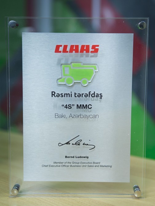 "CLAAS" şirkətinin Azərbaycandakı rəsmi servis tərəfdaşı olan "4S" şirkəti 2017-ci ilin oktyabrında təsis edilib. Hazırda "4S" şirkəti müştərilərinə “CLAAS” məhsulları ilə yanaşı aqrar sahədə alman brendi olan LEMKEN və AMAZONE şirkətlərinin texnikasını da təklif edir. Qeyd edək ki, adı çəkilən şirkətlə aqrar sahə üçün müxtəlif təyinatlı qoşqu vasitələri istehsal edir və hal-hazırda dünya brendi hesab olunurlar.