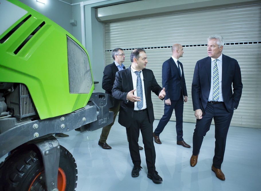 Daha sonra qonaqlar yeni servis mərkəzinə baxış keçirib, anbarın və servis zonasının yüksək səviyyəli təchizatına, müştəri zonasının rahatlığına qiymət verib, burada təqdim edilmiş "CLAAS" texnikası ilə tanış olublar.
