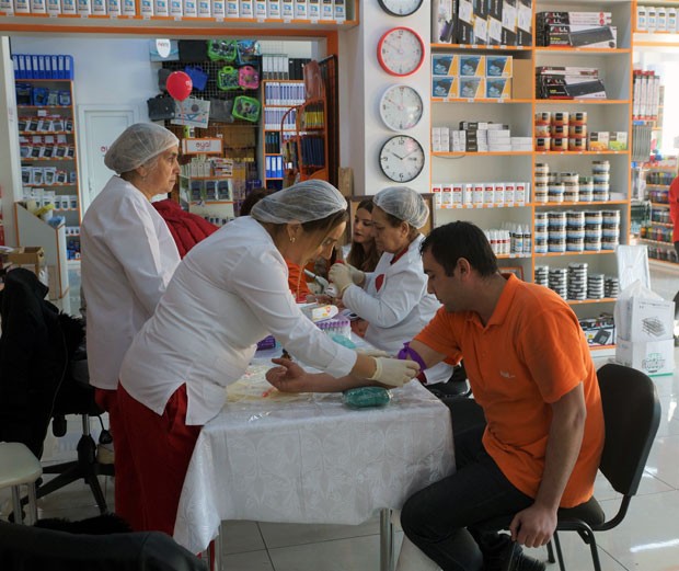 Aksiyada mağaza əməkdaşlarıyla yanaşı, müştərilərdə könüllü qan vermişdir. B.Eyvazov adına Hemotologiya və Transfiziologiya İnstitutunun Mərkəzi Qan Bankının xüsusi tibb briqadasının həkim hemotoloqları donorların sağlamlıq vəziyyətini yoxladıqdan sonra onlardan qan götürüblər. Keçirilən bu cür aksiyalar hemofiliya və talassemiyadan əziyyət çəkən insanların qanla təminatı üçün respublikada artıq ənənəvi hal alan nəcib tədbirlərin davamıdır.