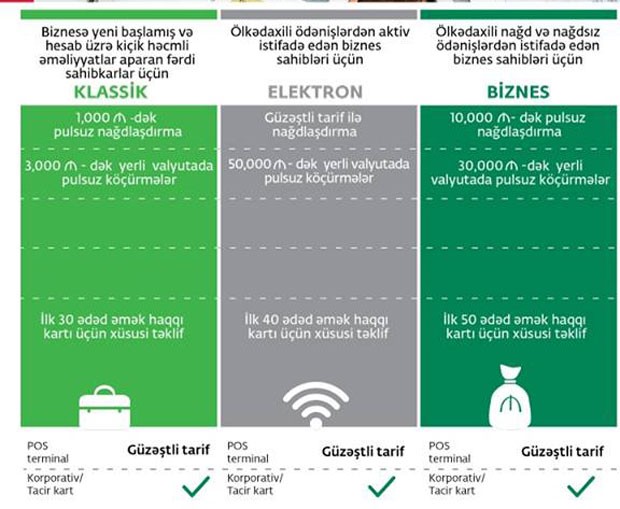 (®) Hesablaşma-kassa xidmətləri üzrə tarif paketləri Kiçik və Orta Sahibkarlar üçün daha sərfəli oldu.
