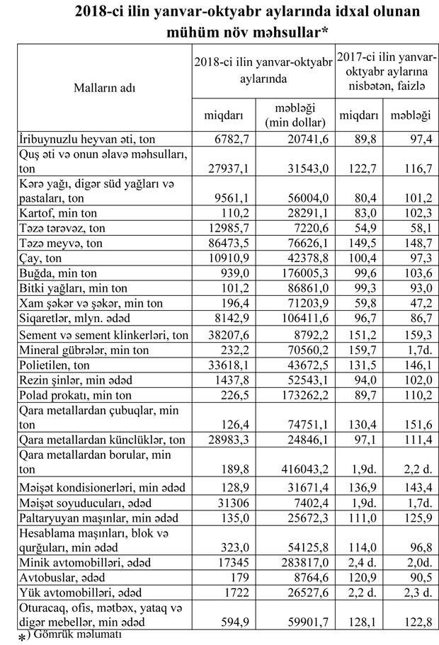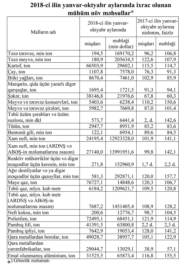 2018-ci ilin yanvar-oktyabr aylarında Azərbaycandan ixrac edilmiş və Azərbaycana idxal olunmuş