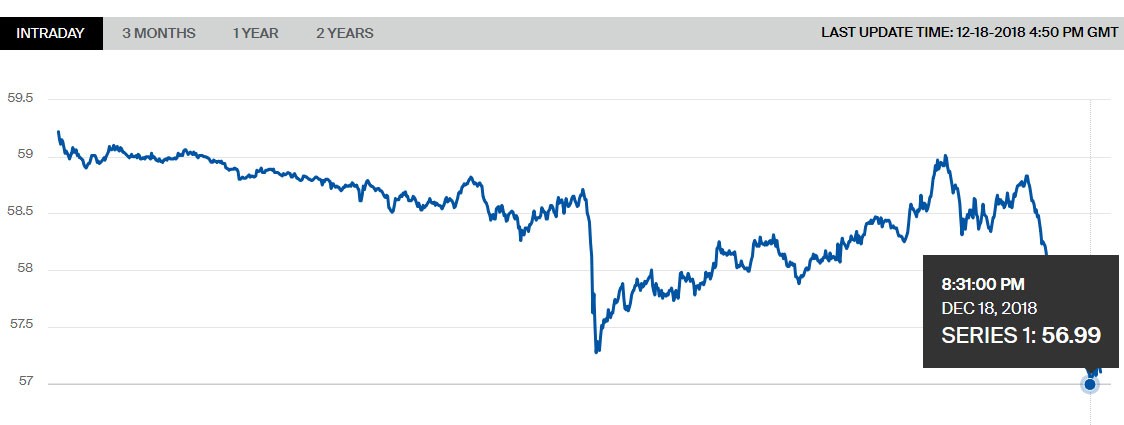 Brent nefti 5,7% ucuzlaşaraq barelinin qiyməti 55,92 dolları, ABŞ xam nefti isə 8% ucuzlaşaraq bareli 46.20 dolları görüb (saat 08:00-a olan məlumat).